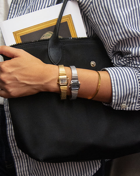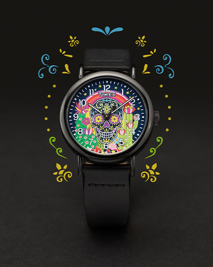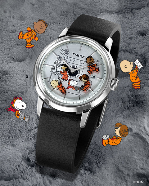 Black and white graphic featuring the word "REISSUE" in bold, uppercase serif typography. A vintage Timex wristwatch is integrated between the letters "E" and "I", appearing vertically as if worn on a wrist, emphasizing the retro theme of the "Reissue" collection. The clean background draws attention to the timeless design of the watch and the bold type.