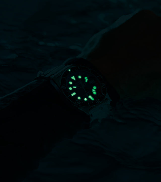 Super-LumiNova® in-fill is a photoluminescent pigment that acts like a ‘light battery,’ charging under natural or artificial light to deliver a brilliant afterglow in the dark.