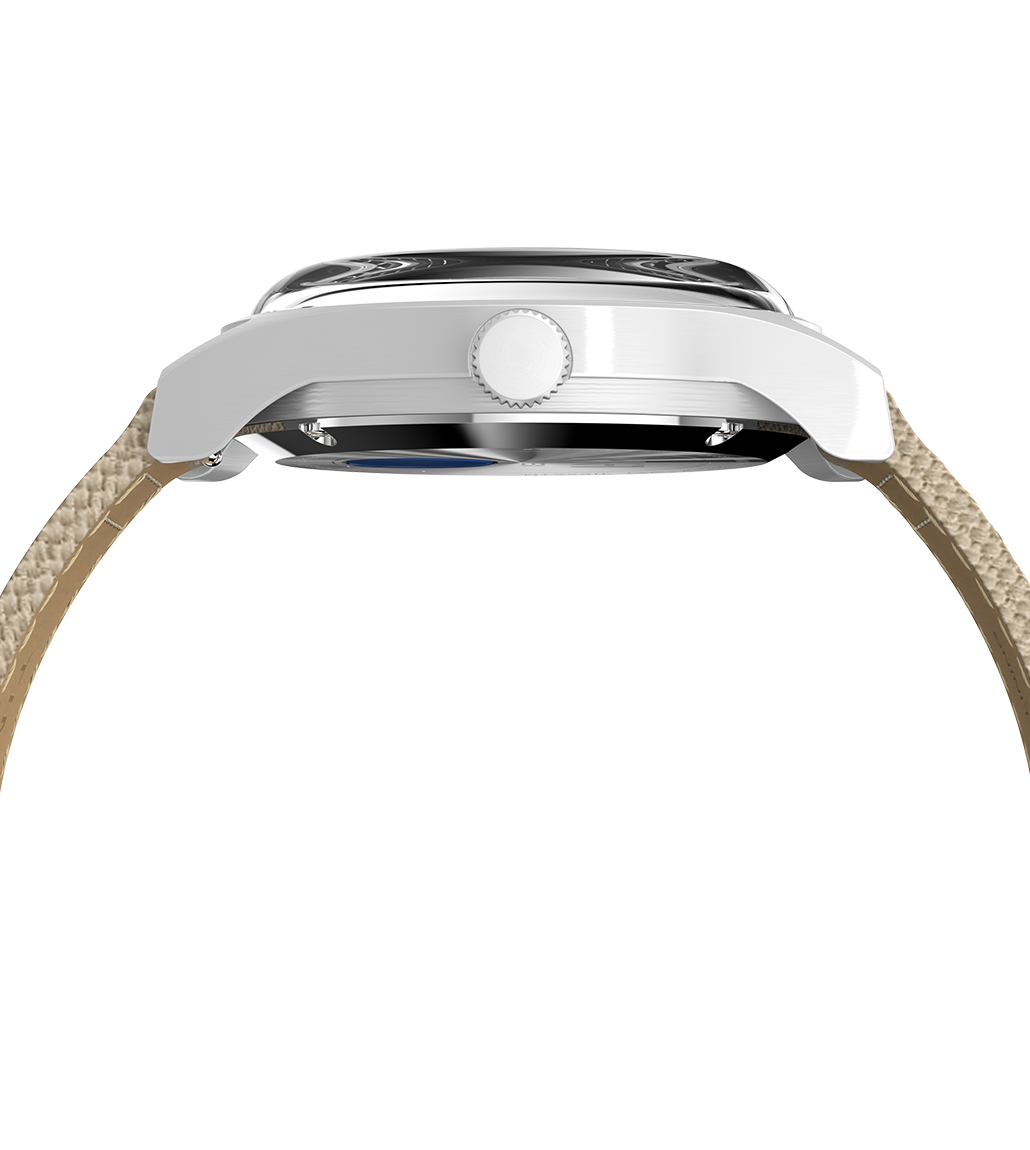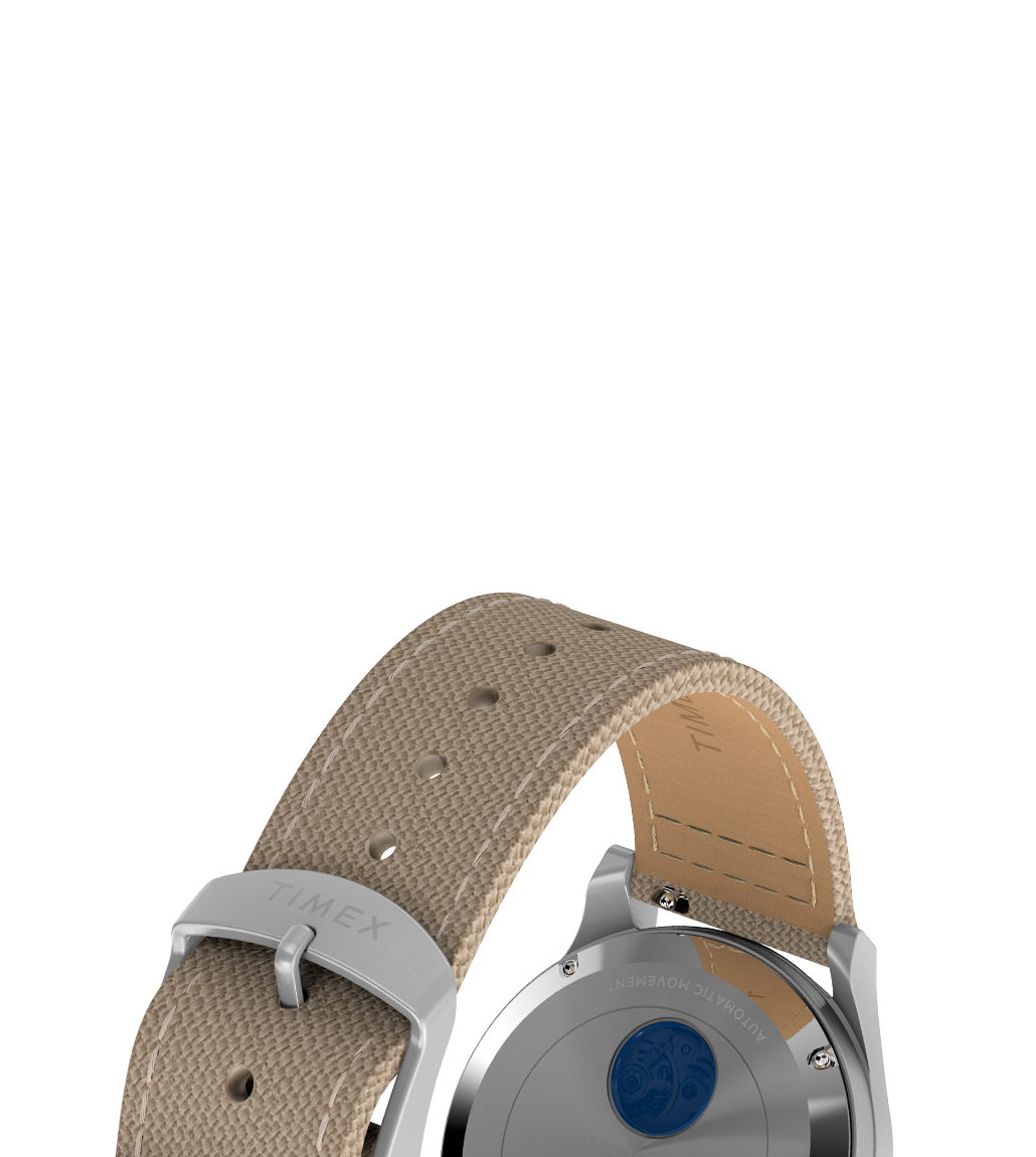 We’re reinventing our beloved MK1®, enhancing its classic military aesthetic with a blue-tinted exhibition window on the caseback that reveals the reliable Japanese automatic movement ticking inside. The 40mm stainless steel case and domed acrylic crystal encase a sleek black dial with both 12 and 24-hour Arabic indices and luminant hands for enhanced visibility. Completing the look is a a sand two-piece Cordura® fabric top layer strap with leather backing, featuring quick-release spring bars for effortless strap changes on the go.
