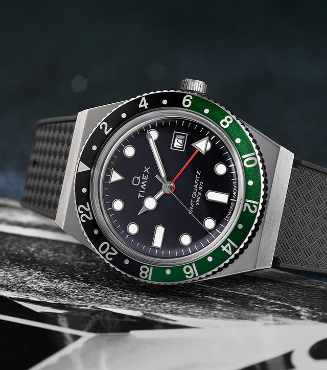 Launched during the quartz crisis of the '70s, the Q Timex collection was born of a great pivot and marks Timex’s most prolific era in design. It reflects the innovative styling that defined the decade, blending vintage elements with modern updates.