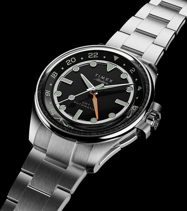The Timex Atelier GMT24 M1a brings clarity and proportion to one of watchmaking’s most enduring functions. Every surface is deliberate, each detail shaped to balance depth and wearability. At its core is the Swiss-made Landeron 24 GMT automatic movement, revealed through an exhibition caseback, with a fourth hand marking time across borders. This is not a jet-age revival. It is time, refined for the traveller’s wrist.Specifications