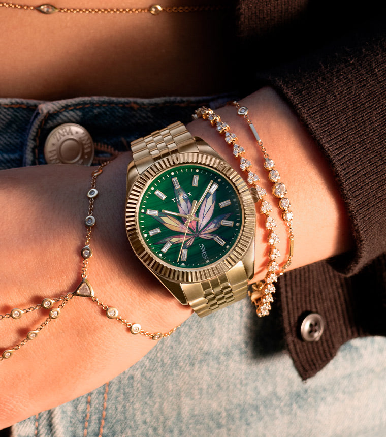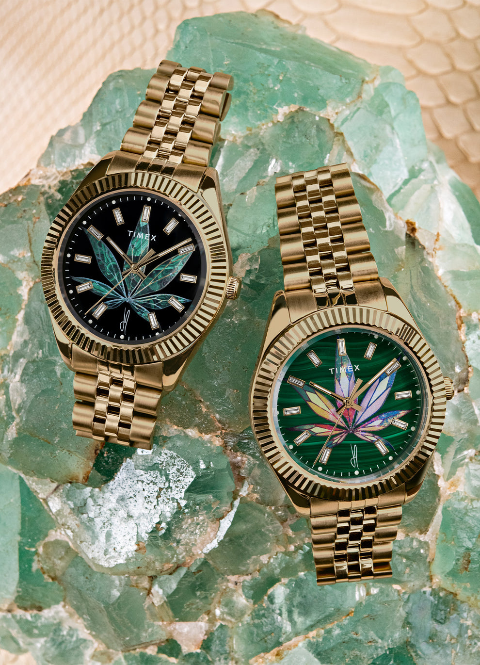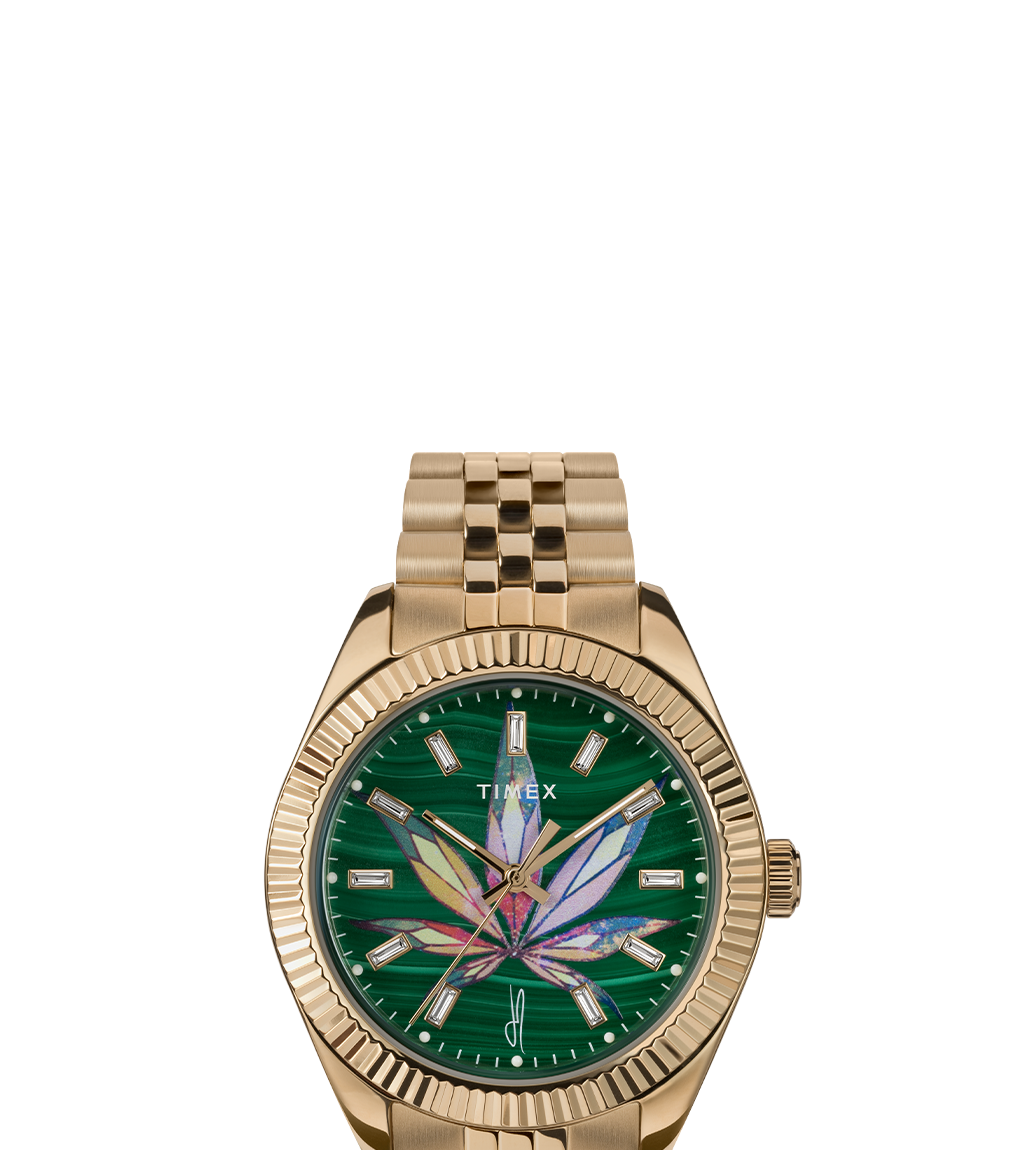 The High Life Collection brings together style, bliss, and the power of the present moment. The sweet leaf is our signature symbol of happiness. Modeled after the botanical beauty of the marijuana leaf, this design is meant to inspire freedom and bring a unique sense of empowerment to your daily essentials with its verdant malachite stone dial. Crafted in a generous 41mm size, this watch is certain to leave a lasting impression wherever you go. With powerful protection properties, malachite stone is like a personal, protective shield. It is known to direct high vibrational and cleansing energy to areas within that are in need of love.