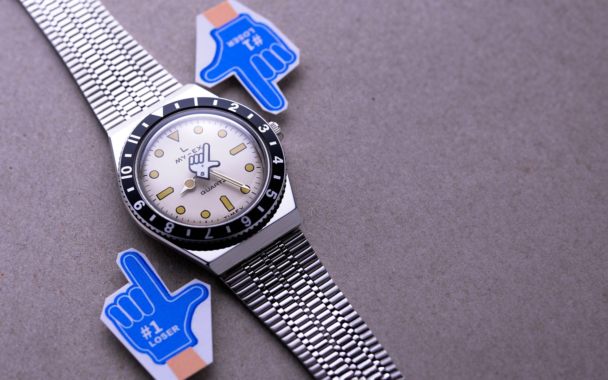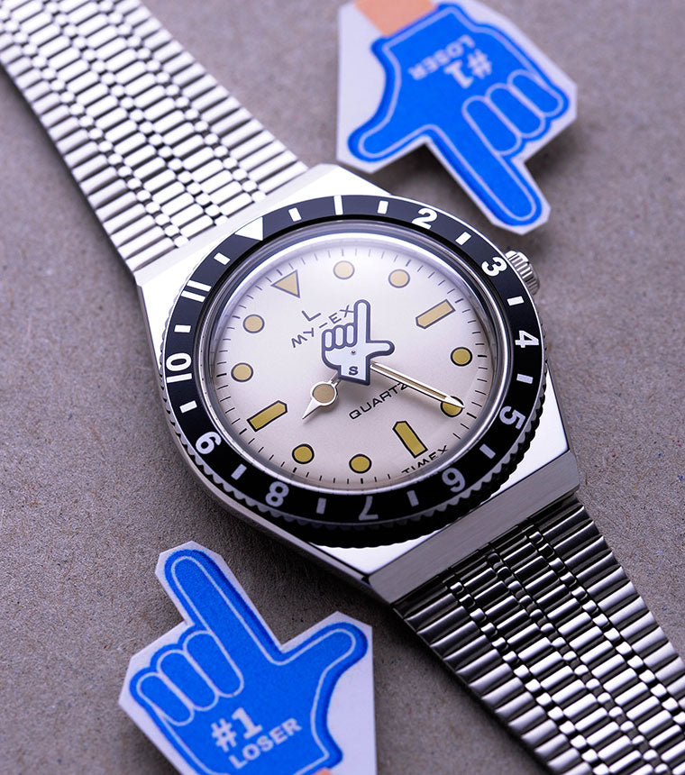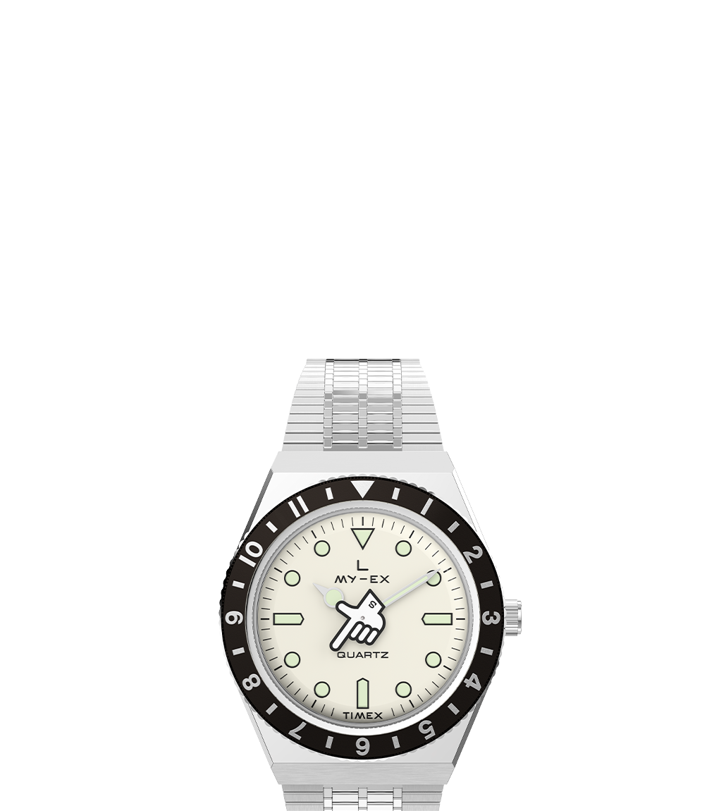 Your ex is a loser and the Q Timex x seconde/seconde/ Loser agrees. This update to our ‘70s Q Timex is complete with a customized second hand and unique dial markings, clearly branding your ‘ex’ as the ‘loser’. But beware, while this watch can definitely be some sort of a remedy for a hard break-up, just be warned that aside from soothing the wound, it could also hurt a bit. The ‘L’ hand takes an unexpected turn, pointing towards you every minute. Other features include all you’d expect from our Q Timex: a stainless-steel case and band, rotating top ring, functional battery hatch, luminant dial markings, and domed acrylic crystal.