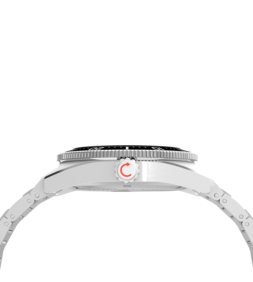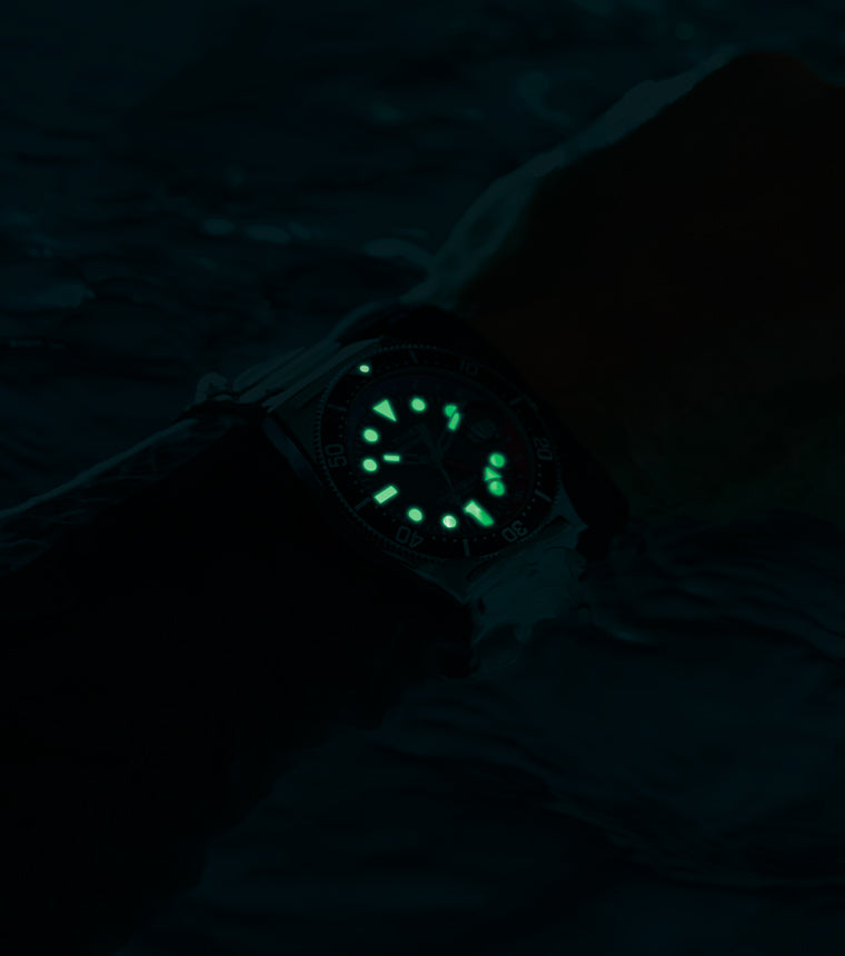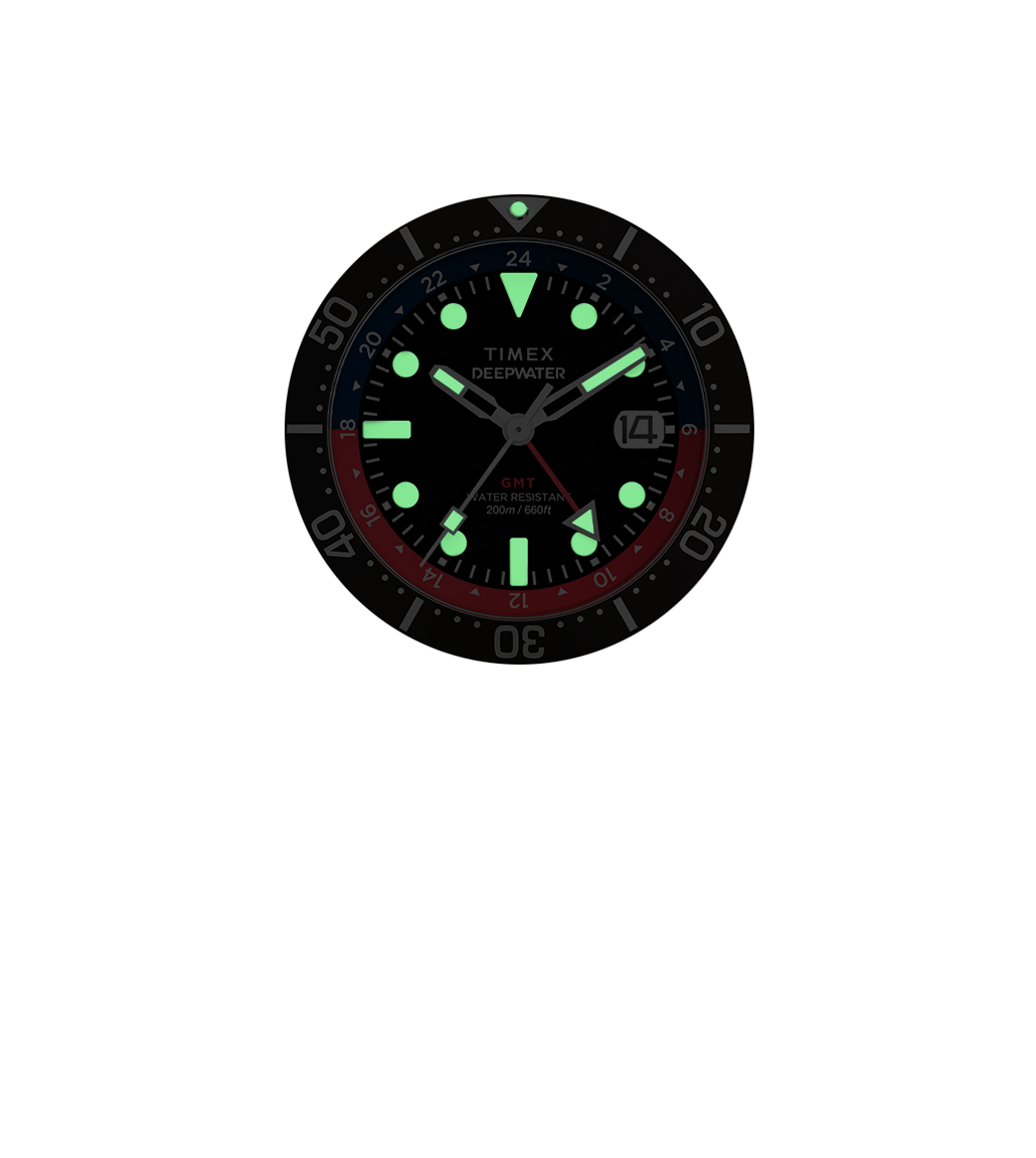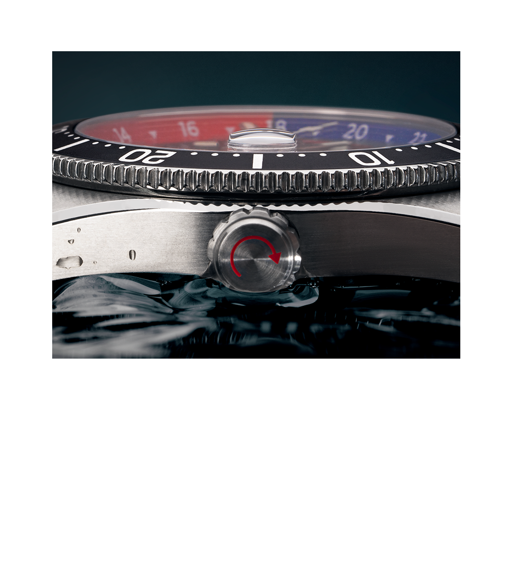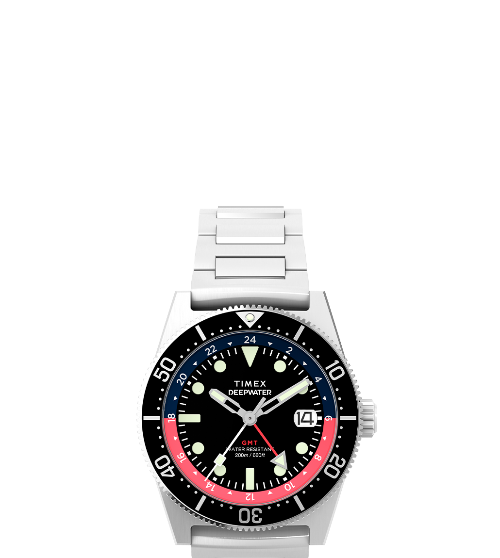 Merging resilience and elegance with crucial functions for underwater pursuits, our Deepwater Reef 200 GMT is expertly engineered to venture deeper. Built with a sturdy 41mm stainless-steel case, fortified with a screw-down crown and screw-on caseback, it effectively keeps water out and offers 200m of water resistance. It's powered by a reliable quartz GMT movement, and we’ve equipped it with a scratch-resistant sapphire crystal with anti-reflective coating, a date window with a magnifier for enhanced visibility, a unidirectional bezel, and Super-Luminova® hands and hour markers providing the luminosity you rely on as you explore beyond the edge. Enjoy durability and style both in and out of the water with a robust, corrosion-resistant stainless-steel bracelet.
